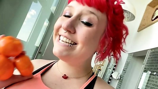 Plump Big Titty Gal Gets Penetrated With Vegetables And Bottles