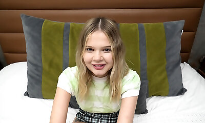 Slender pretty first-timer blond head Daisy gets penetrated doggy hard on cam