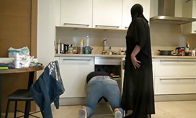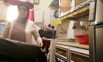 Egyptian splendid stepmom with big ass gets stuck under bed while cleaning bedroom, then neighbor comes & fucks her (huge Jizm)