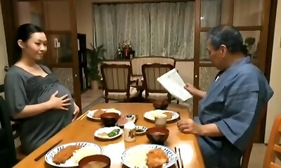 Daddy-in-law manhandles his Japanese daughter-in-law while his son works