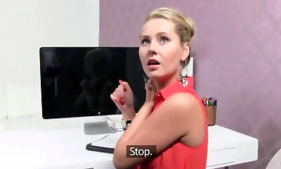Black Audition sofa is ready to accept the new skinny blonde pornstar