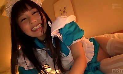 Momoka Rin, a super-naughty and dissolute teenager Asian damsel, dresses up in tights and a maid garb for a warm Japanese hump session.