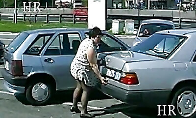 Red haired slutty girl likes pissing on fresh air with eagerness