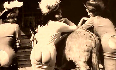 Bitches from 20th century teasing with booties in vintage compilation