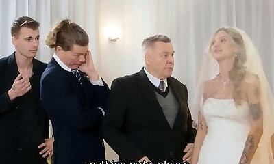 Useless groom sees his slim bride riding strong cock certainly wild