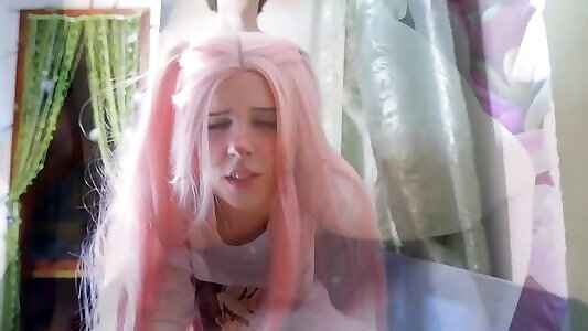 ma jolie copine aux cheveux roses aux gros seins a trait ma bite à sec après un rapport sexuel incroyable