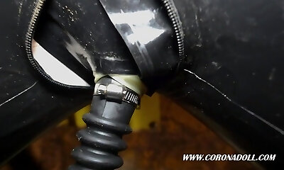 BLACK Latex PUBLIC GASMASK BREATH PALY
