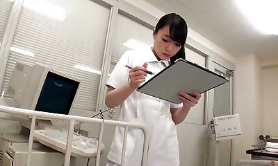 Naughty Japanese nurse gives hot head fucking and rear pulverize