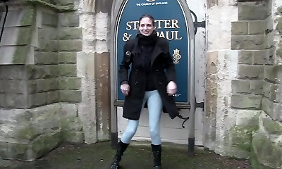 Blonde babe with long legs loves urinating in public places