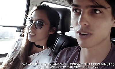 Two fledgling pretty chicks are picked up for crazy three-way sex