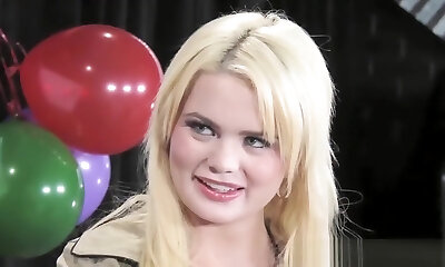 Ultra-cute blonde cheerleader Daisy Lynne seduced by a hunk