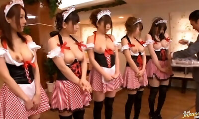 Five Japanese Honies in Costume with Big Cupcakes to Play With