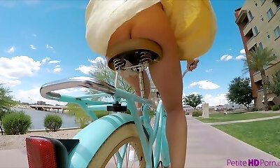 Pantless gal Avi Love is riding her bicycle before a steamy lovemaking with stranger