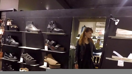 Jamee teenie黑头发的蜂蜜在一个衣服店