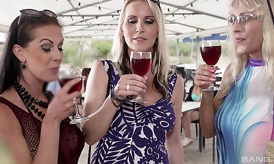 两个野生男子穿透sluttishly看女人多莉女王在泳池边