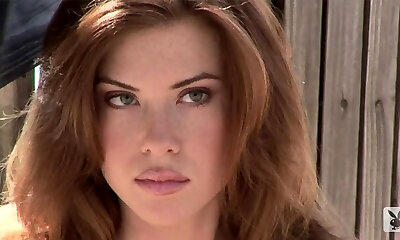 苍白的红头发的女孩安娜贝尔Redd喷出她的比基尼被蹂躏